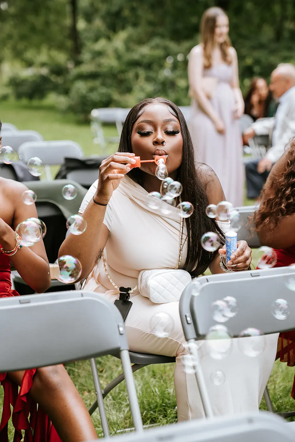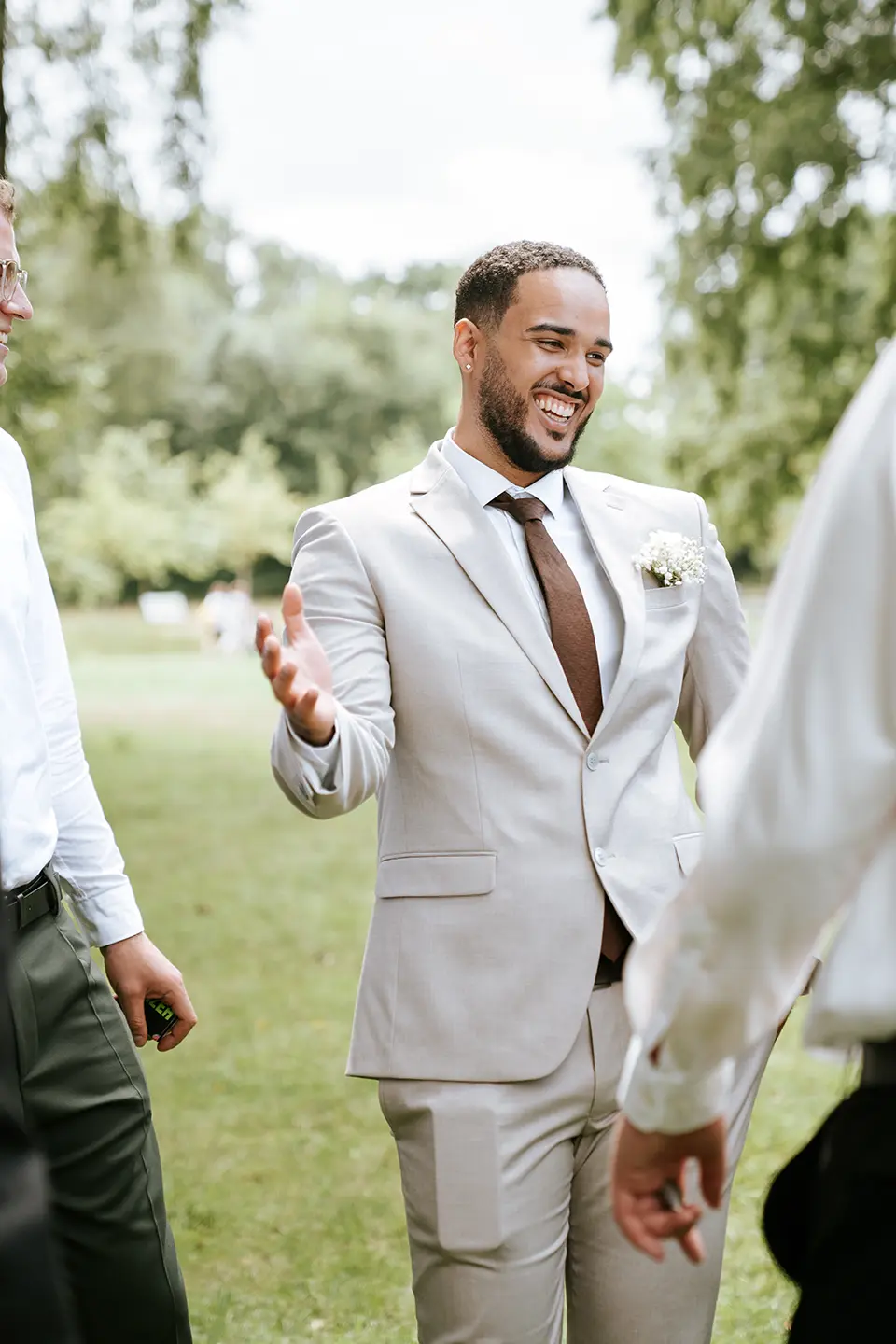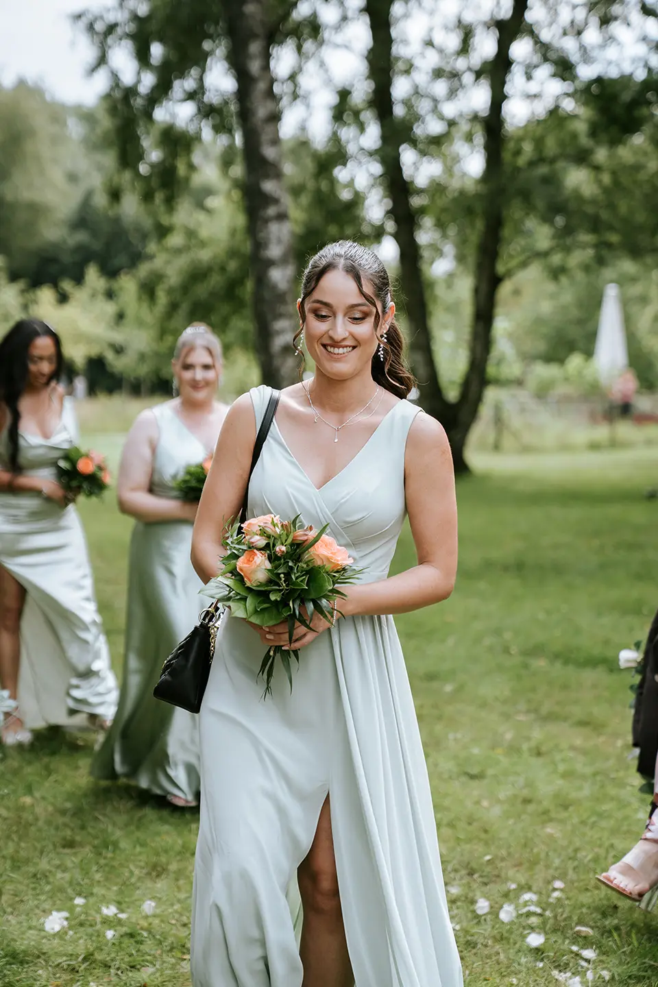 Die Zeremonie war im Boho-Stil gehalten – eine freie Trauung auf einer grünen Wiese, ohne unnötige Details, dafür mit echten Gefühlen und lebendigen Momenten. Der Stadtpark Norderstedt bot die perfekte Kulisse: sanftes Sonnenlicht, sattes Grün, kleine Waldwege und weite Rasenflächen. Die Natur selbst sorgte für einen stimmungsvollen Rahmen – und so entstanden künstlerische Hochzeitsfotos und Videos, die noch lange an diesen Tag erinnern werden.