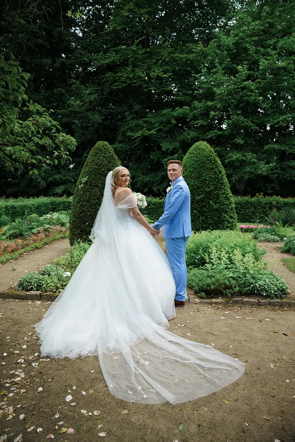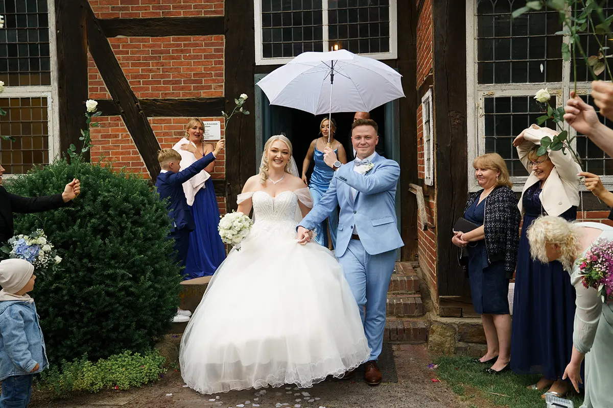 Direkt nach der bewegenden Zeremonie hielten wir den eindrucksvollen Auszug des Paares fest, wΓ€hrend die GΓ€ste rechts und links Spalier standen. NatΓΌrlich entstanden auch Gruppenfotos mit der Drohne, die diesem Tag eine ganz besondere Perspektive verliehen.