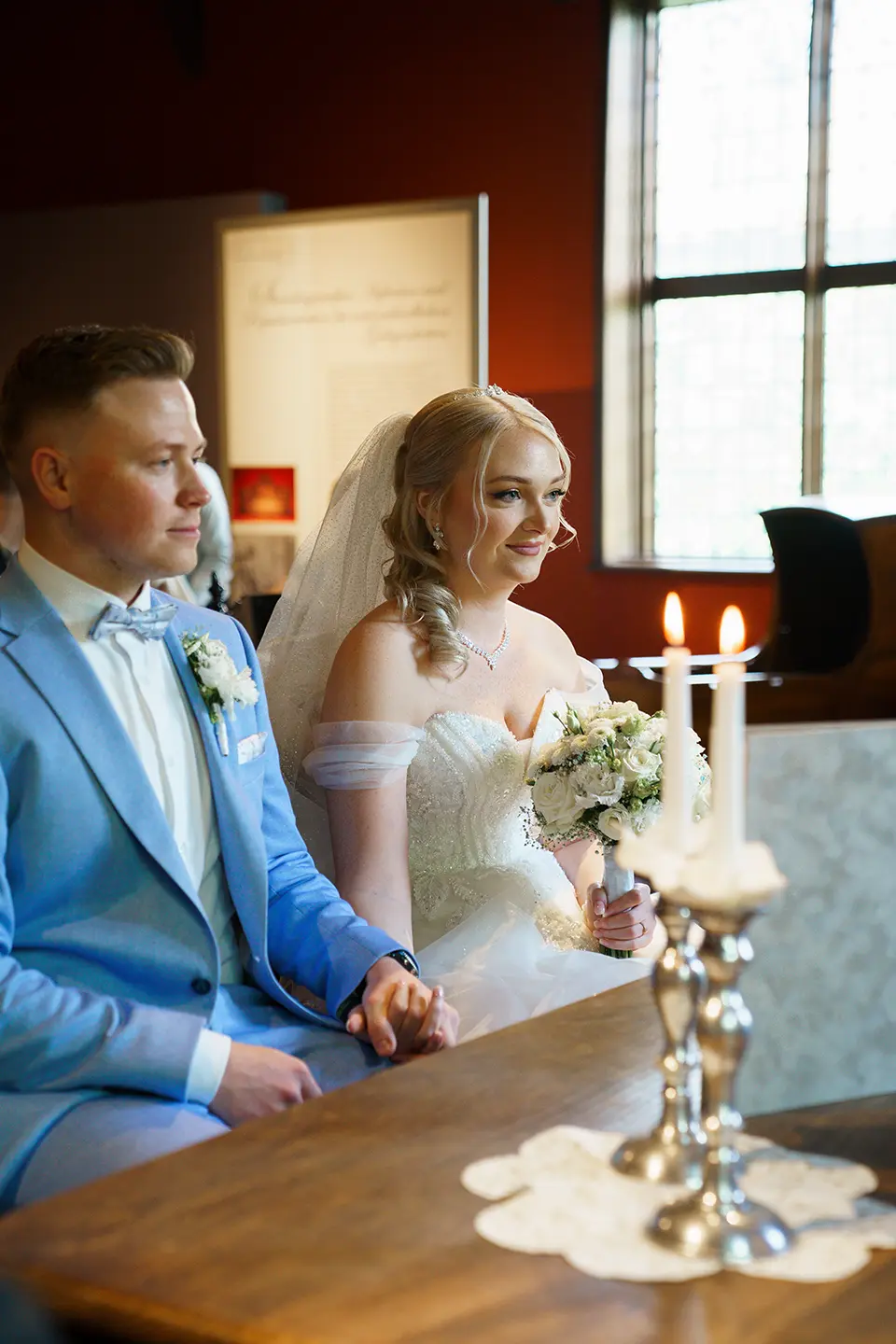 FΓΌr Valeria und Frank durften wir eine ganztΓ€gige romantische Hochzeitsreportage gestalten β mit emotionalem Hochzeitsvideo und einzigartigen Momenten, die fΓΌr immer bleiben. Die SchΓΆnheit der MΓΌhlen im Museumsdorf Cloppenburg wurde zur perfekten Kulisse fΓΌr ihre standesamtliche Trauung und die anschlieΓende Fotosession. Die Zeremonie selbst fand in einem historischen Saal auf dem GelΓ€nde des Museumsdorfs statt β mit Kerzen auf den Tischen, antiken MΓΆbeln und einer besonderen AtmosphΓ€re, die diesen Moment unvergesslich machte.